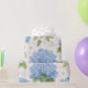 Elegant hydrangea floral wrapping paper featuring soft blue blooms on a warm ivory background. A timeless choice for birthdays, weddings, garden parties, and refined gifting.