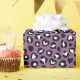 Padrão elegante, na moda e sofisticado com manchas-leopardo e corações em cor roxa e preta. Presente moderno e moderno, perfeito para o amante da impressão animal em sua vida.