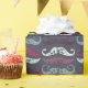 Um padrão de impressão de bigode divertido em um lindo tom de morango, violeta e azul em pó.