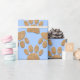 Estilo de desenho animado bonito com a impressão de pata de cachorro com textura burlap. Rolos de papel de embrulho personalizados. Um pouco de fundo azul. Tudo o que se vê é impresso, não será usada nenhuma pincelada real no fazer deste produto, a ideia de embrulhar presentes para amantes de cães de todas as idades.