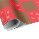 Rolos de papel de embrulho de presente personalizados com impressão de padrão de xadrez vermelho e verde e flocos de neve brancos. Excelente e decoração de festas.