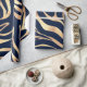 Este impressão de Design estético estético estético estético, desenhado à mão, Azul e Dourado, brilhante e azul, é perfeito para adicionar um toque elegante a eventos especiais de celebração ou ao Glam Home Decor. Uma marca de zebra moderna e moderna recheada de linhas onduladas a cores douradas e derrames, formando uma bela zebra tropical stripes abstrato, sobre fundo Marinho-azul.