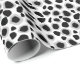 Uma tomada actualizado em um impressão clássico do leopardo - pontos do leopardo no preto tradicional com cinza de prata em um fundo branco