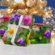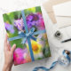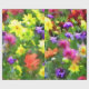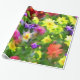 Este papel de envolvimento artístico, floral é coberto com as massas das flores em cada cor do arco-íris. Aprecie o grupo abstrato do amarelo, da laranja, do rosa, do vermelho, do azul, o roxo e do branco do teste padrão em um fundo das folhas verdes. Ao ver isto, um é lembrado de uma pintura impressionista francesa.