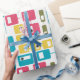 Este papel de embrulho tem uma design moderna do século médio de retângulos arredondados, alguns dos quais são fixados e alguns deles têm estrias, em cores retrorreflectoras de vermelho, ouro, verde e turquesa. Se você gosta do design, mas prefere cores diferentes, me mande mensagem.