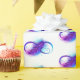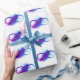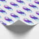 Símbolo infinito com uma bela pena pintada em cores roxas e azuis brilhantes sobre fundo branco.