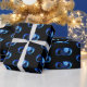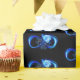 Símbolo de infinito luminoso com rosa brilhante, linda e exuberante feita de chamas azuis em fundo preto.