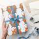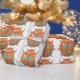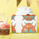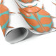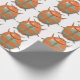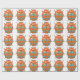 Um besouro laranja e turquesa rasteja neste papel de embrulho. Inseto bonito e legal embrulhando papel perfeito para uma festa de menino.