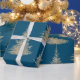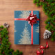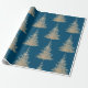 Papel De Presente Inverno elegante da árvore verde-Dourada e azul