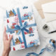Papel De Presente Inverno Wonderland Azul e Vermelho