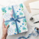 Papel De Presente Íris Azul e flores silvestres Padrão de Aquarela