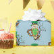 Uma coruja de celeiro giro vestindo um chapéu verde de duende com dois telhados