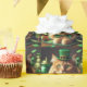 Gato de mesa laranja vestindo um chapéu de Dia de São Patrício