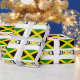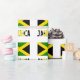 A bandeira jamaicana é negra, dourada e verde. O ouro é uma salga que vai do centro para cada canto. O preto está à esquerda e à direita, preenchendo o exterior da salga. O verde faz o mesmo que o preto, mas no topo e no fundo da bandeira. Este design apresenta a palavra JAMAICA abaixo da bandeira no mesmo design. Compartilhe sua herança com este papel de embrulho.