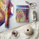 Pintura multimídia colorida, branca, única e mista .design elegante em brilhos dourados, azul vibrante, verde, rosa, amarela, cor púrpura com folha de ouro e prata. O tema diz respeito a arquétipos e simbolismo alquímico medieval. Trata-se de uma visão destilada do imaginário coletivo occidental e oriental que busca imagens remotas das profundezas do misterioso jardim das sombras perdidas.