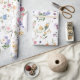 Lindo papel de embrulho inspirado em boho com alegres flores silvestres em aquarela em tons de rosa, lavanda, amarelo, azul e verde.
