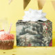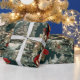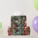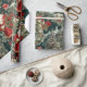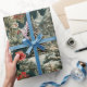 O papel de embrulho apresenta uma cena deliciosa e nostálgica de um Papai Noel antiquado em um charmoso jardim de inverno adornado com um verde-natalino exuberante e majestosas árvores verdes. A design exude o calor e a magia da época de férias.