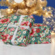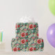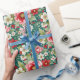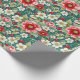 Um impressão floral de estilo vintage com rosas vermelhos e brancos, pequenas poinsettias vermelhas, várias flores brancas, morangos vermelhos numa forma harmoniosa de chalé. Imagem perfeita.