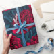 Papel De Presente Jardim de peônia vermelha em azul escuro