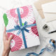 Este papel de embrulho tem um design escandinavo de flores minimalistas em tons retrorados de rosa.