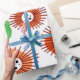 Este papel de embrulho tem um design escandinavo de flores minimalistas em tons retrorados de laranja e marrom. Brilhante, colorido e festivo.