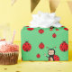 Papel de embrulho com joaninhas fofas em verde. Joaninhas simbolizam boa sorte universal!