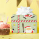 Embrulho de presente criativo de Natal de softball com desenho animado do Papai Noel jogador de softball de rebatida rápida ao bastão.