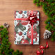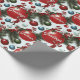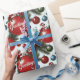 Este papel de embrulho festivo apresenta um padrão repetitivo de imagens clássicas de Natal sobre um fundo branco. O motivo principal é um grande ornamento vermelho brilhante com a palavra "Saudações" em elegante roteiro branco em seu centro. Enchidos sobre e ao redor desses grandes ornamentos vermelhos são numerosos elfos brancos vestidos de roupas tradicionais vermelhas e brancas. Alguns elfos parecem subir nos ornamentos, enquanto outros estão se afastando de trás ou interagindo com outros elementos da design. Interpersados ao longo do padrão estão os ramos de pinho verde, adicionando um toque de verde natural de férias. Os ornamentos mais pequenos em vários tons de vermelho, verde e azul, assim como alguns brancos ou prateados, são espalhados pelo papel, melhorando ainda mais o sentimento festivo. A impressão geral é alegre e tradicional, fazer ideal para a doação de presentes de Natal.
