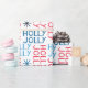 Jolly Holly Typografia Vermelho Azul Branco papel embrulho de Natal de Ricaso