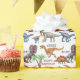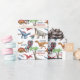 Este papel de presente de aniversário feliz tem um padrão divertido de dinossauros coloridos. Sete dinossauros diferentes crescem, rugem e rastejam, enquanto o texto personalizado diz "Parabéns (Nome)". Fácil de personalizar, e será amado por qualquer menino que ame dinossauros.