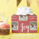 Este papel de embrulho de presente de Natal oferece dois quadros de fotos quadrados para suas fotos favoritas da família. O fundo é vermelho vivo e acentua-se com o texto "Joy" aparecendo em um estilo popular manuscrito. Personalize este pacote de presentes de feriado com suas fotos e seu nome.