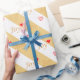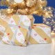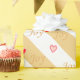 Corações alegres no ouro diagonal e papel de embrulho de presente listrado branco.