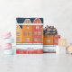 Uma bela ilustração aquosa do azul mudo; cru; laranja; cinzas vermelhas e magras casas magras que ficam lado a lado contra um fundo azul cheio de neve e um campo branco cheio de neve. Uma faixa vermelha ondulada com as palavras; Joyeux Noel; Que é francês para o Feliz Natal aparece no canto inferior. Estes são ideais para trazer um toque de elegância para o seu presente embrulhado apresenta esta época festiva.