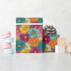 This vibrant floral wrapping paper features a playful and whimsical design with densely packed, colorful flowers in shades of magenta, orange, teal blue, pink, white, and mustard yellow. The seamless pattern creates a continuous flow, perfect for adding a cheerful touch to any gift. Rendered in a modern, flat vector style, the bold colors and simple forms evoke feelings of warmth and positivity, making it ideal for celebrations or special occasions.