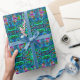 Caleidoscópio selvagem colorido, um padrão sem soldadura psíquica. Tons azuis e verdes com sotaques cor-de-rosa.