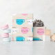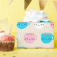 Repete-se o padrão de xícaras azuis, cor-de-rosa e brancas, em forma de gato, de chá - ou café - com rostos kawaii.
