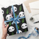 Um belo estilo de desenho animado, um urso panda e um padrão de bambu. Rolos de papel de embrulho de presente personalizados. Design de kawaii original.