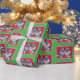 Dois Keeshonden estão no espírito de feriado com seus Papais noeis e chapéus de elfo.