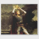 Um cavaleiro com uma armadura brilhante, com uma capa vermelha a passar atrás dele, ergue reverentemente uma coroa de ouro sobre sua cabeça contra um pano de fundo montanhoso. A cena exude uma aura de heroísmo medieval e busca épica. Esta pintura é chamada "Rei Arthur" por Charles Ernest Butler.