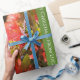 Papel de embrulho de Natal com um padrão contínuo que apresenta uma bela árvore celebratória NZ Xmas, a Pohutukawa, são flores vermelhas florescendo no verão do Kiwi. Há texto personalizado para colocar num cartões de natal que prefere, em texto branco contra um verde bonito.