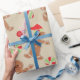 Kraft Cute Gingercake Man, Candy Cane e Red Buttons Papel de embrulho de Natal.