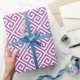 Papel De Presente Labirinto de Chave Grega Roxo e Branco Chic