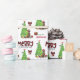 O padrão repetido neste belo papel de embrulho de Natal é uma imagem de um filhote de chocolate Labrador Retriever vestindo um chapéu vermelho e branco de Papai Noel. O cachorro se senta entre pacotes de presentes envoltos ao lado de uma árvore de Natal decorada. Um pássaro toucinho está pousando na árvore atrás dele. O texto de xadrez de búfalos vermelho e preto estilizado diz MERRY CHRISTMAS", e sua própria assinatura está em dois campos para você personalizar.
