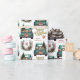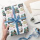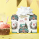 Um caminhão azul-lacre carregar uma árvore de Natal decorada e pacotes de presentes neste belo papel de embrulho de presente. Um adorável cachorrinho amarelo Labrador Retriever veste um chapéu de Papai Noel e espia pelo rabo. Um cartaz de madeira na pára-choque diz "Feliz de Natal". Seu monograma está contido em um bonito cone de pinho e uma coroa de morango vermelha, e o texto em ouro estilizado diz "Feliz Natal". Você também pode personalizar o texto "do (Nome).