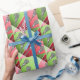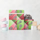 Brincadeira de Natal criativa de lacrosse com palitos de lax com arte em fundo vermelho e verde.