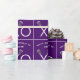 Invólucro criativo de presente de lacrosse com paus de lax e padrão de xo no fundo roxo da equipe. Para personalizar o texto de edição para adicionar nome e, de outra forma, personalizar.