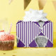 Brincar de presente de lacrosse criativa para jogador, treinador ou equipe roxa com palito de lax em fundo listrado.