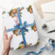 Uma ilustração engraçada de uma lagosta tocando uma uke. Esta ukulele brincando de lagosta ou lagosta está em uma praia tropical, debaixo das palmeiras. Vestes de verão.
