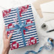 Papel De Presente Lagosta vermelha náutica listra azul e branca | B