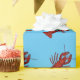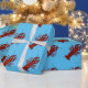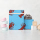 O papel de envolvimento das lagostas projetou lagostins vermelhos brilhantes em um fundo azul.